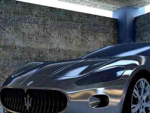 The sports car scene behind as the sun down